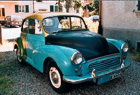 Unser Morris im mittleren Stadium seiner neuen Haut. Als Feierabend-Automaleristas reicht es pro Tag jeweils nur für ein Karrosserieteil. Wir arbeiten uns von hinten nach vorne. Der Spass ist garantiert. Was wir mit unserem topaktuellen Alltagswagen so alles erleben, wollen wir dem Internet nicht vorenthalten.